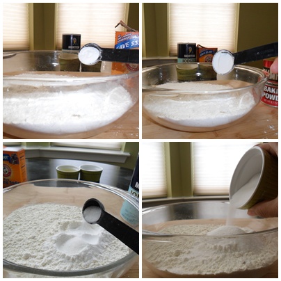 Measure 3 cups of flour into a medium bowl. I always spoon it in first, then level it off with the back of a butter knife.